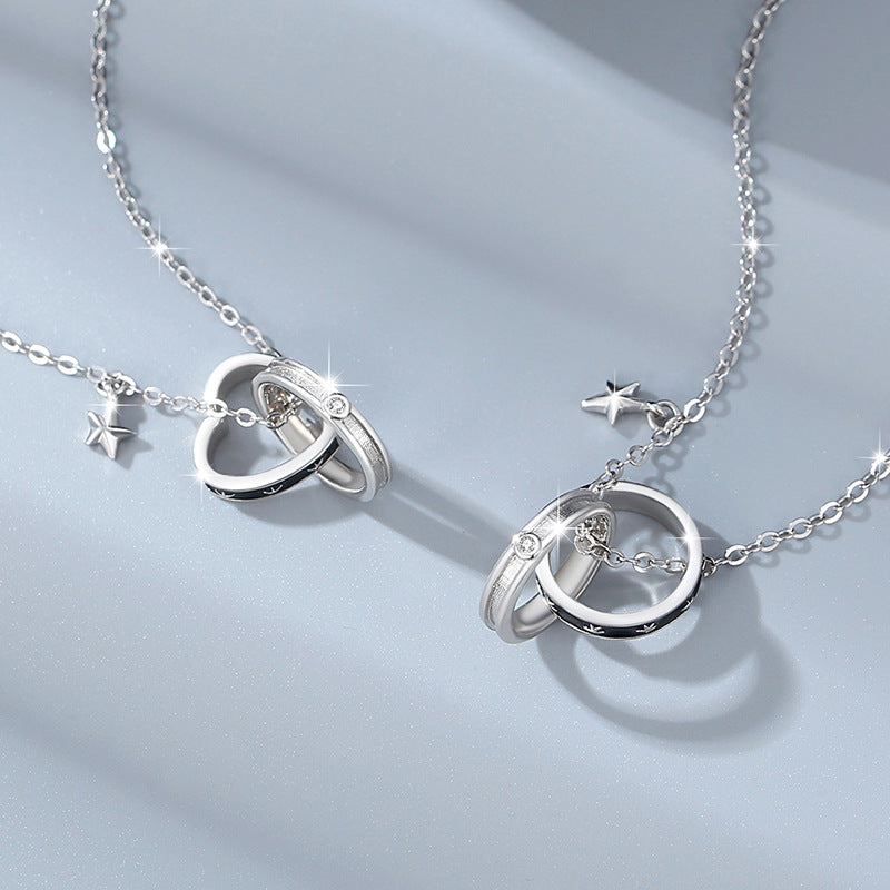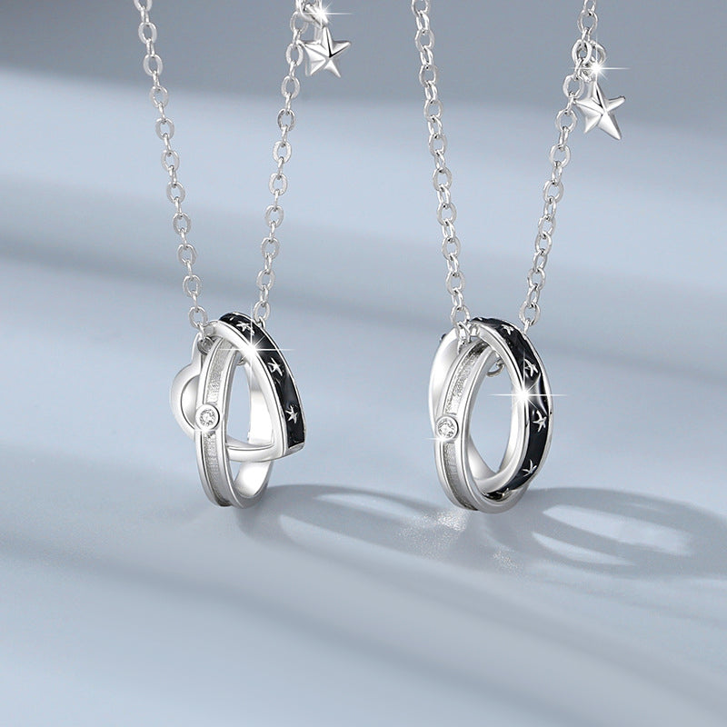 Celebrate a friendship that stands the test of time. Order your Engraved Interlocking Rings Necklaces Set today and personalize it with a message that speaks to your special bond!