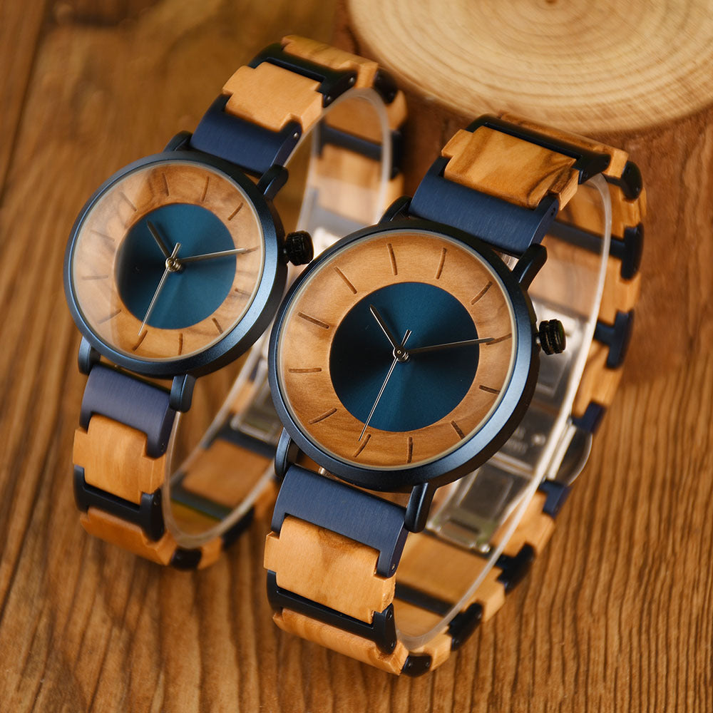 This Matching Wooden Couples Watch Set makes a Perfect Gift for Any Occasion. Whether it's a wedding. anniversary. or birthday. these watches are a thoughtful way to commemorate the moment. Each watch comes beautifully presented in its own exquisite gift box. making for a Perfect Gift Presentation that is ready to give.