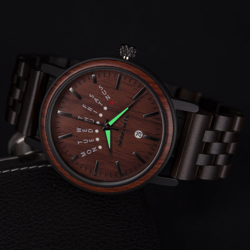 Discover our Matching Wood Couple Luminous Watch Set. where timeless beauty meets functionality. Crafted from solid wood and stainless steel. these watches boast a luminous feature. making them both stylish and practical. Illuminate your moments together with this exquisite set.