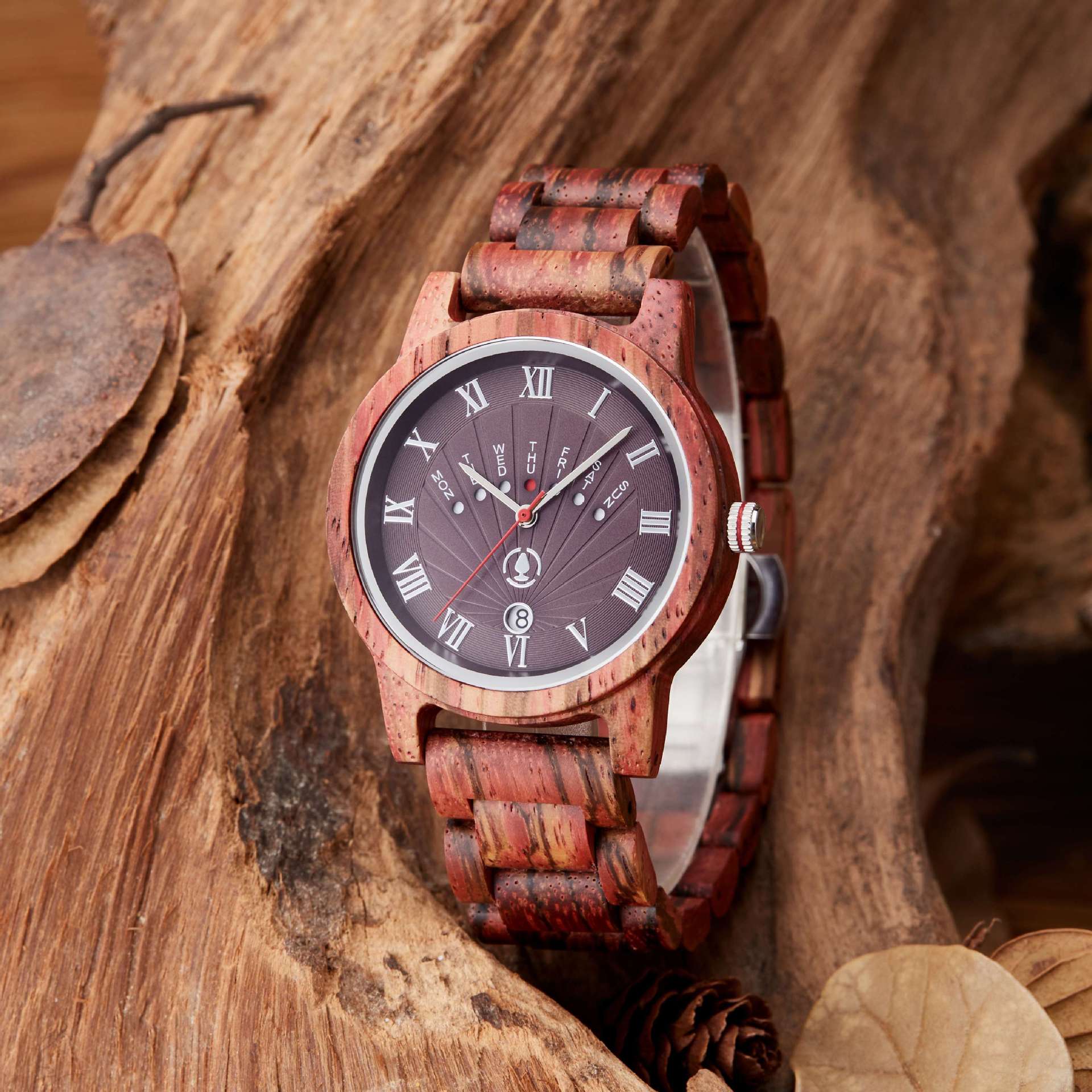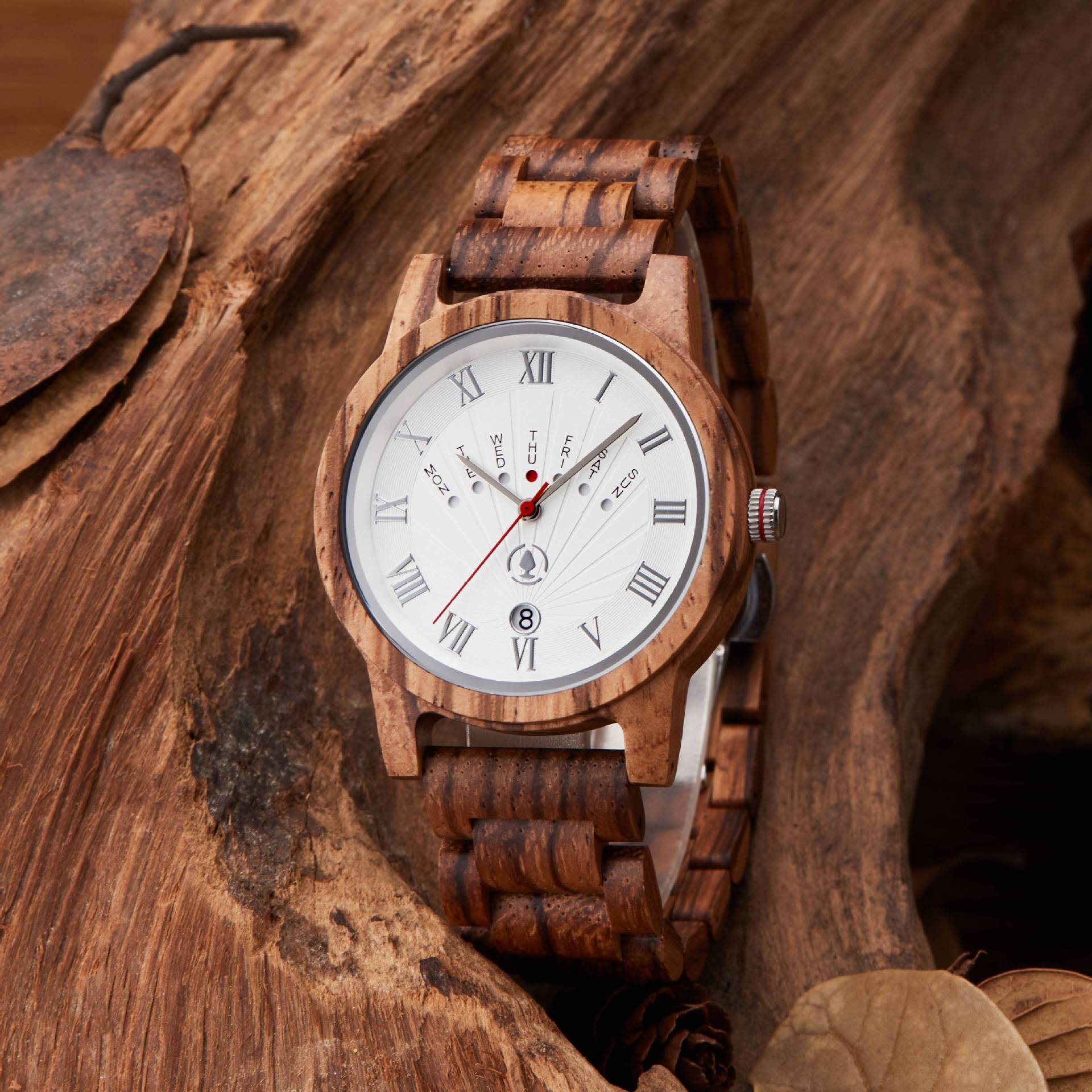 Elevate your style with our men's analog wood watch. featuring customized Roman numerals. Crafted from solid wood and stainless steel. this timepiece blends nature's warmth with modern sophistication. Create a unique statement by personalizing your watch. Embrace timeless elegance and precision with this distinctive piece.