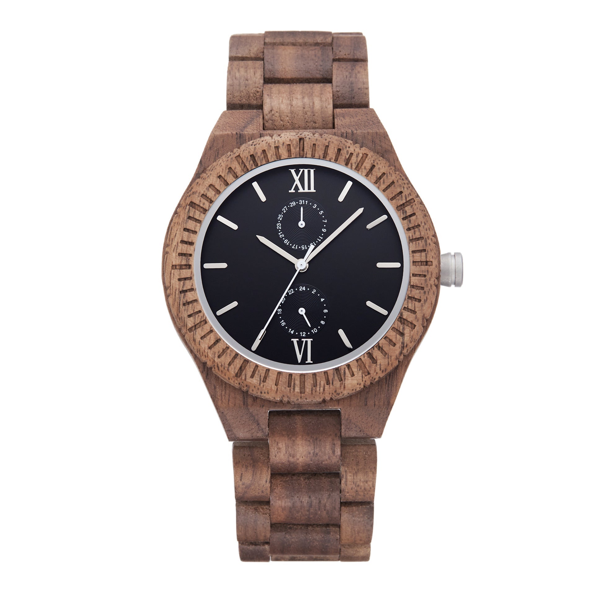 Elevate your style with this men's elegant wood watch crafted from solid ebony wood and stainless steel. Add a personal touch with customized engraving. making it a unique and meaningful accessory. Its timeless design complements both formal and casual attire. Embrace sophistication with a personalized twist.