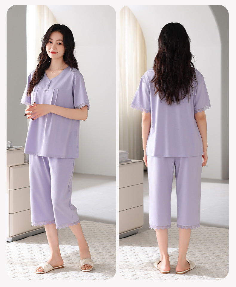 This versatile 2-piece pajama set. which includes 1 top and 1 shorts. features a minimalist solid color style. It's the perfect selection for serene summer nights at home. relaxing after a long day. or as a thoughtful birthday gift for any woman seeking superior comfort and peace of mind.