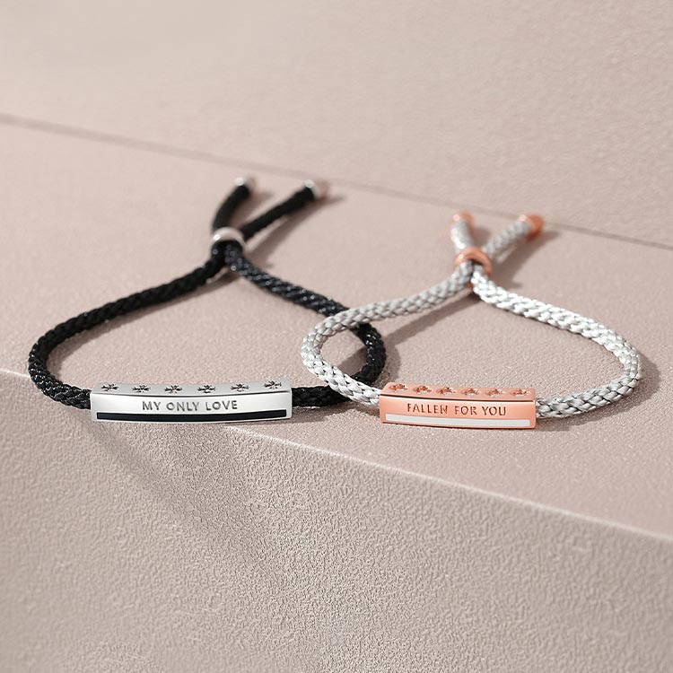 Please Note: Bracelets feature pre-engraved messages "FALLEN FOR YOU" and "MY ONLY LOVE" that cannot be changed.
