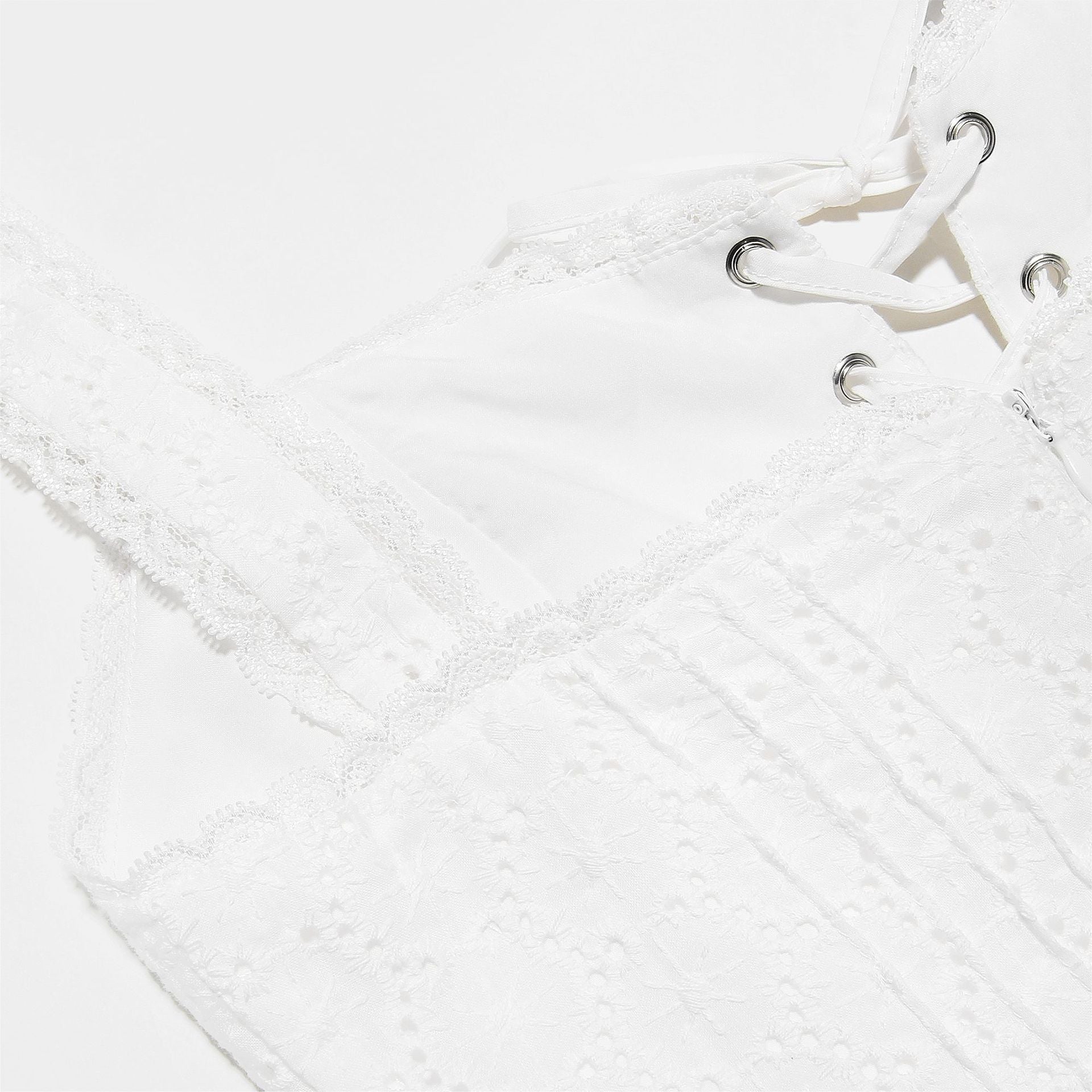 Decrease quantity for White lace suspender slim midi dress
