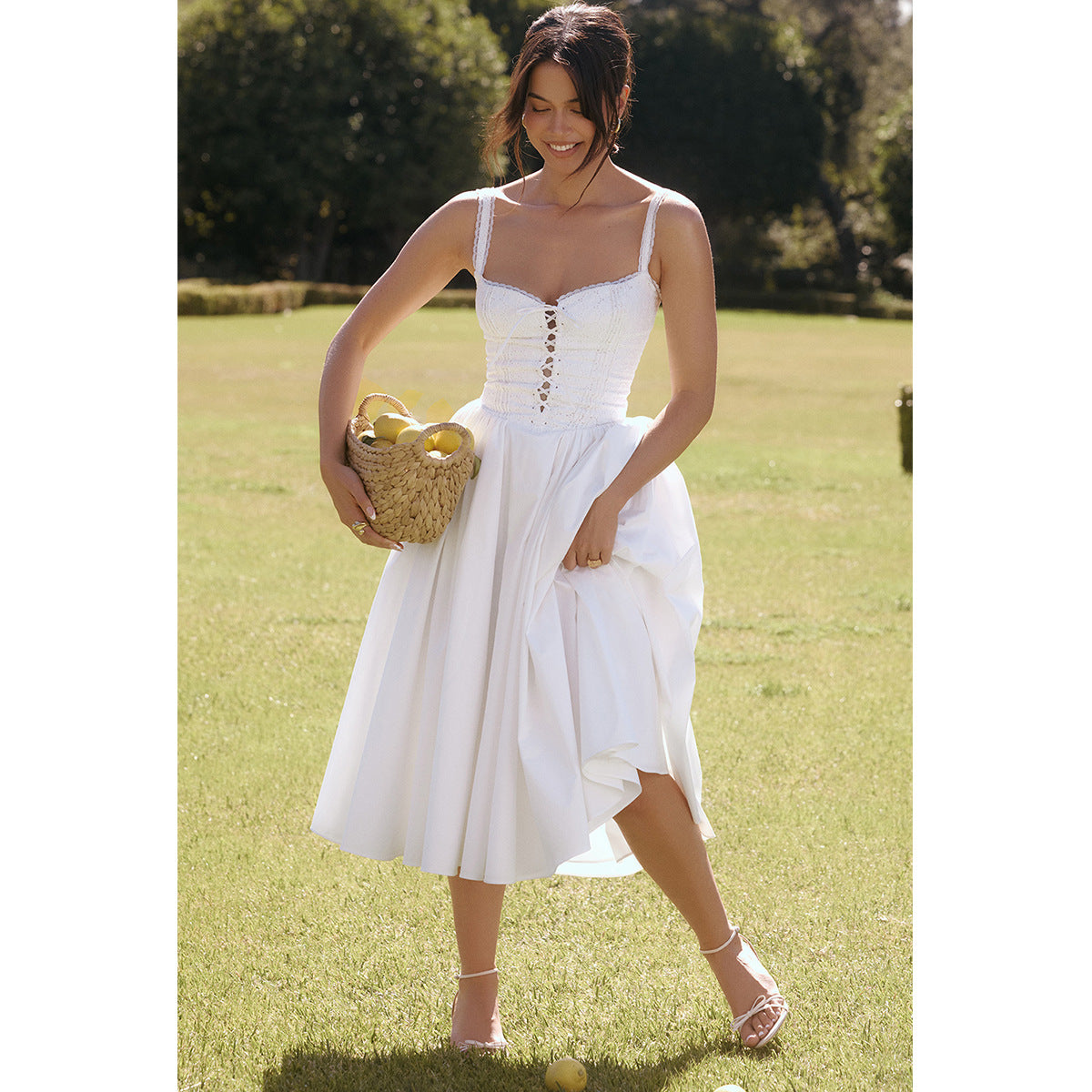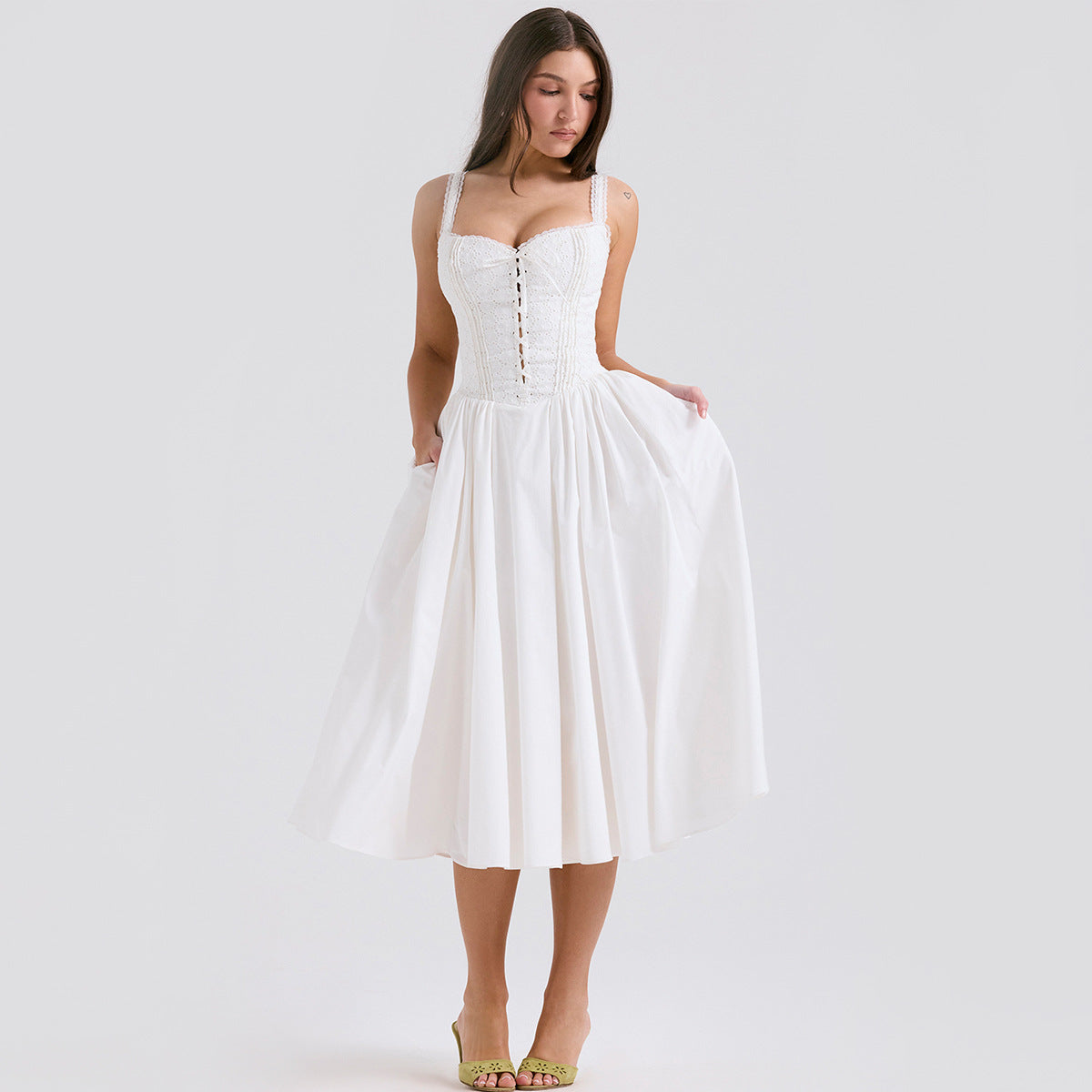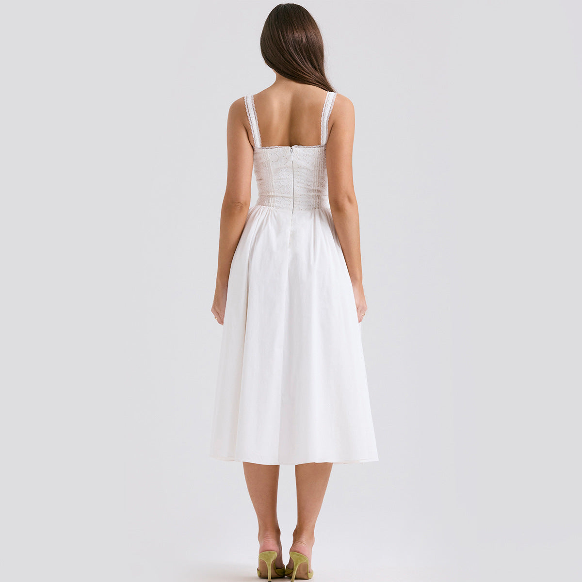 White lace suspender slim midi dress