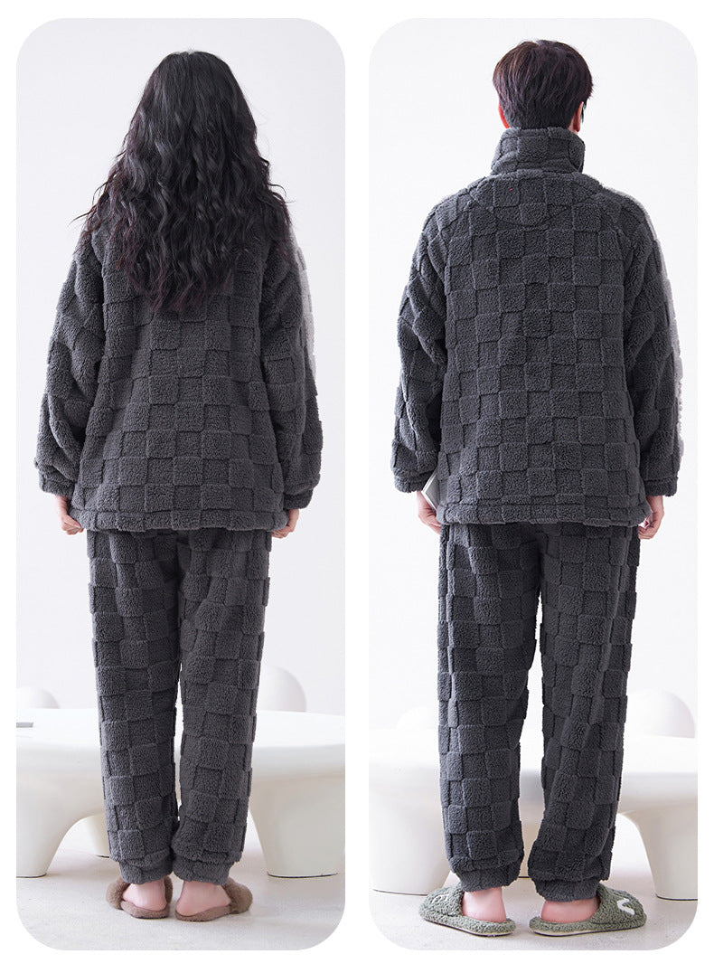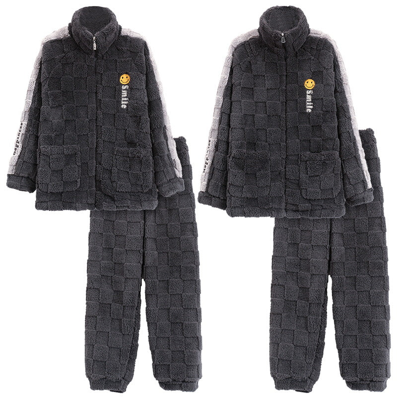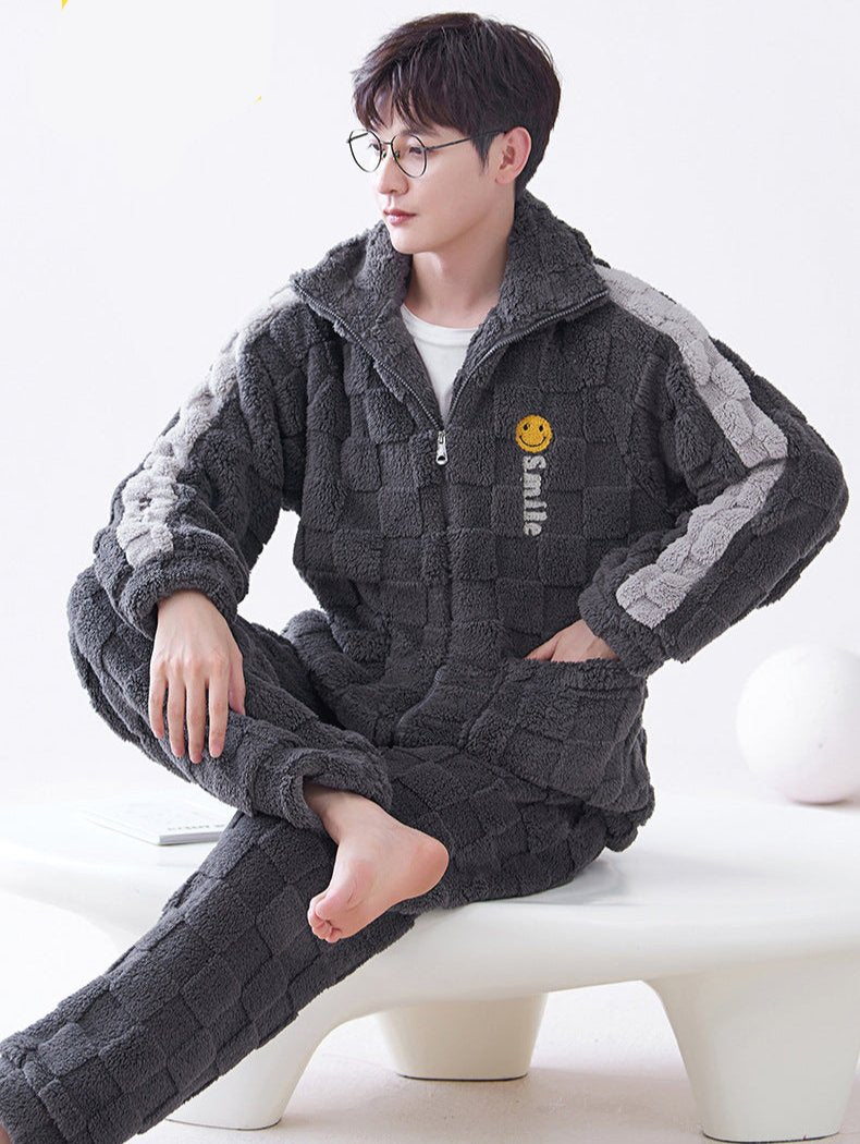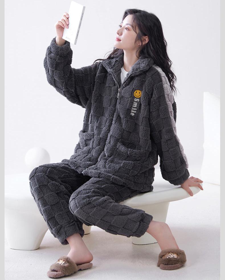 Indulge in ultimate warmth and style with our Thickened Flannel Zip-Up Matching Pajamas Set. Crafted from premium thickened flannel. these soft and cozy pajamas are perfect for the coldest winter nights. The zip-up design. loose fit. long sleeves. and plush fabric provide maximum warmth and comfort.