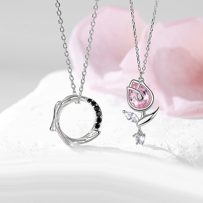 Show your best friend how much you care with the Thorns and Roses Couples Necklace Set. These interlocking pendants. a rose and a thorn. symbolize the beauty and strength of your special bond. Crafted with 3 layers of 18K gold plated 925 sterling silver and sparkling cubic zirconia stones. this set offers a touch of elegance for both of you.
