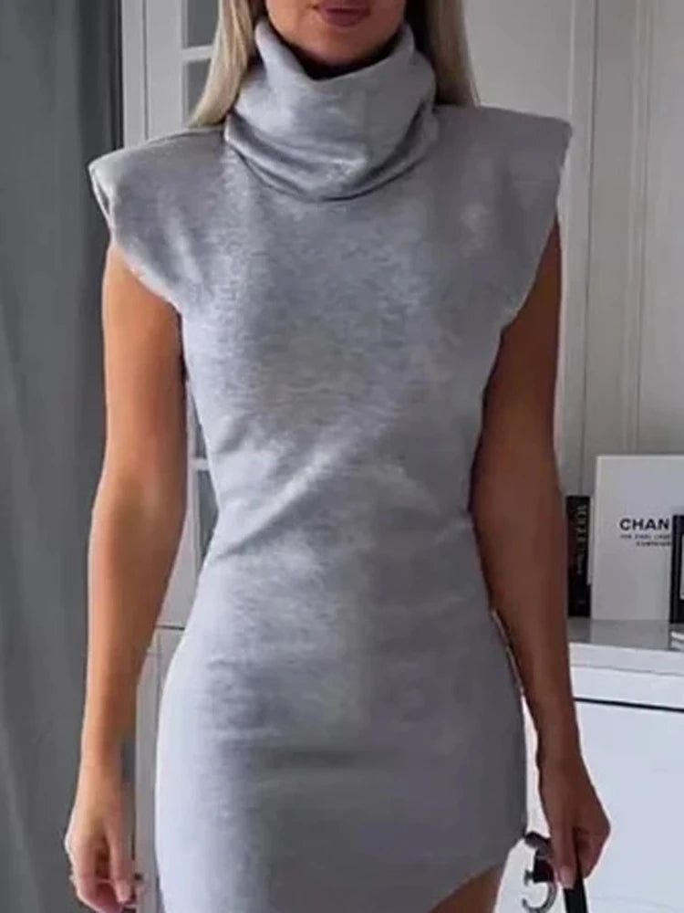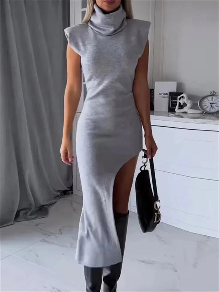Tossy Sleeveless Fashion Turtleneck Long Dress Female Solid Split Patchwork Slim Autumn Maxi Dress Women's Elegant Party Dress