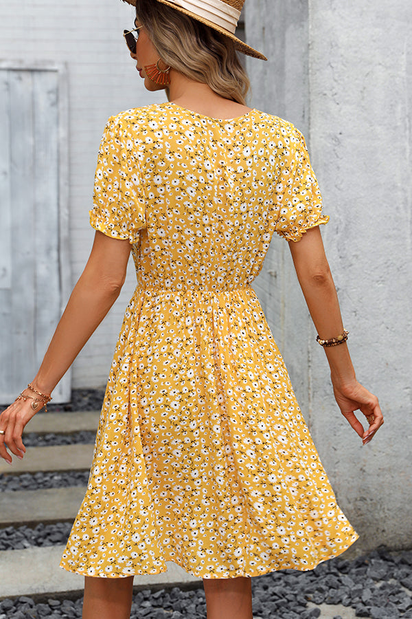 Increase quantity for V Neck Floral Print Short Sleeve Mini Dress