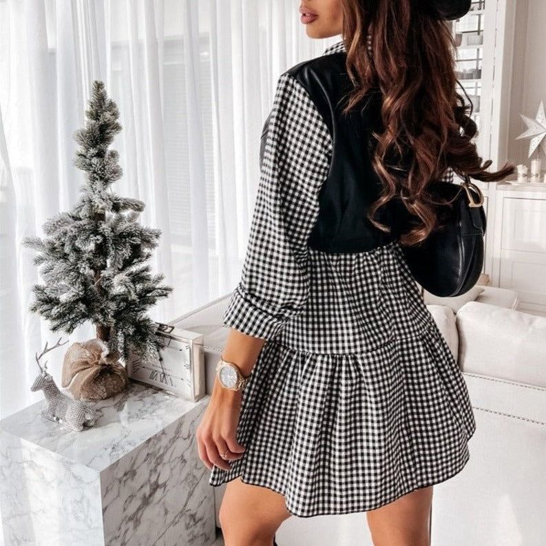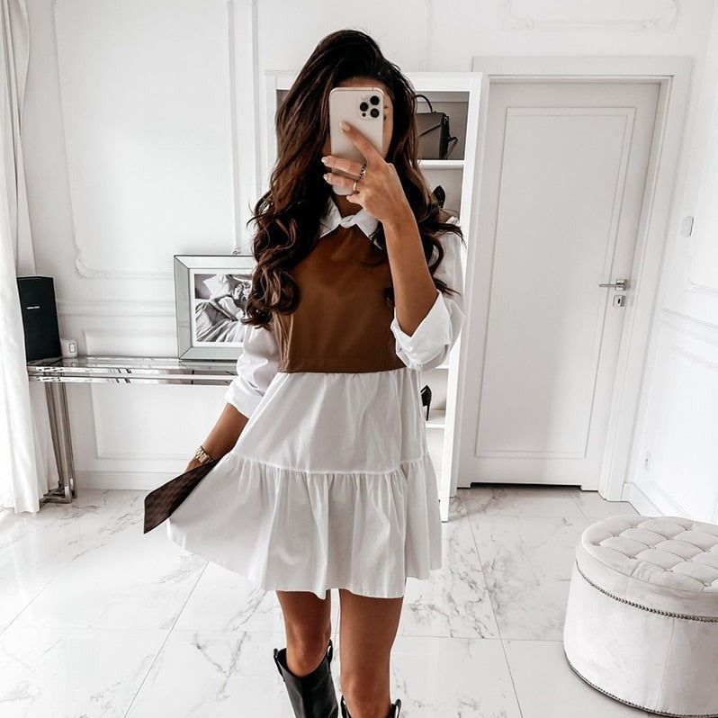 Women's Solid Color Long Sleeve V Neck Off Shoulder Dress with Pleating
