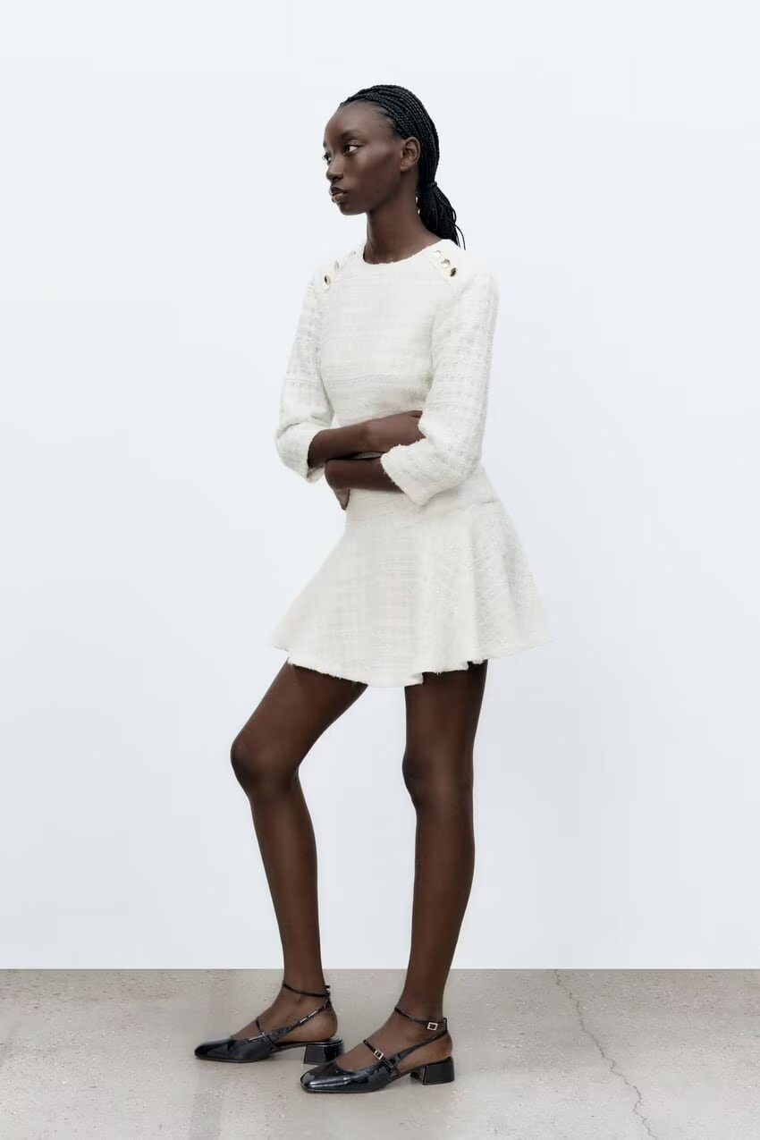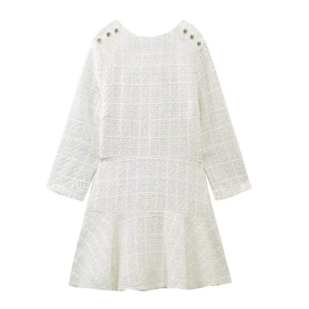 Increase quantity for Women's Autumn Winter Crew Neck Slim Fit Buttoned Decorative Texture Short Dress