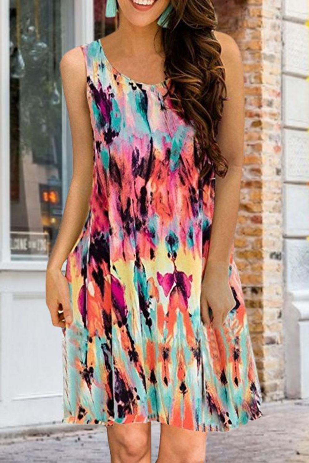 Increase quantity for Women's Stylish Floral Sleeveless Pocket Tank Top A-Line Boho Beach Vacation Casual Dress